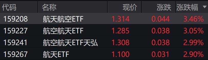 航天航空概念股走强,航天电子、中国卫星、中航重机涨超6%,航发动力涨超4%。