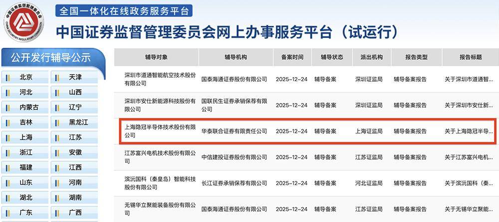 芯东西12月25日报道,12月24日,证监会官网显隐冠成立于2019年1月,注册资本为4200万元,法定代表人是其董事长兼总经理吴立伟。启动A股IPO进程,辅导机构为华泰证券。