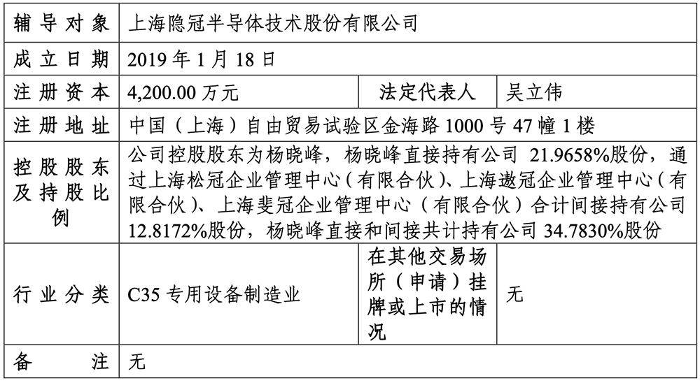 隐冠成立于2019年1月,注册资本为4200万元,法定代表人是其董事长兼总经理吴立伟。