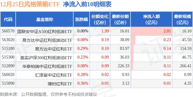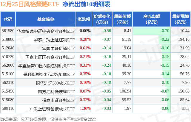 【ETF观察】12月25日风格策略ETF净流入0.7亿元