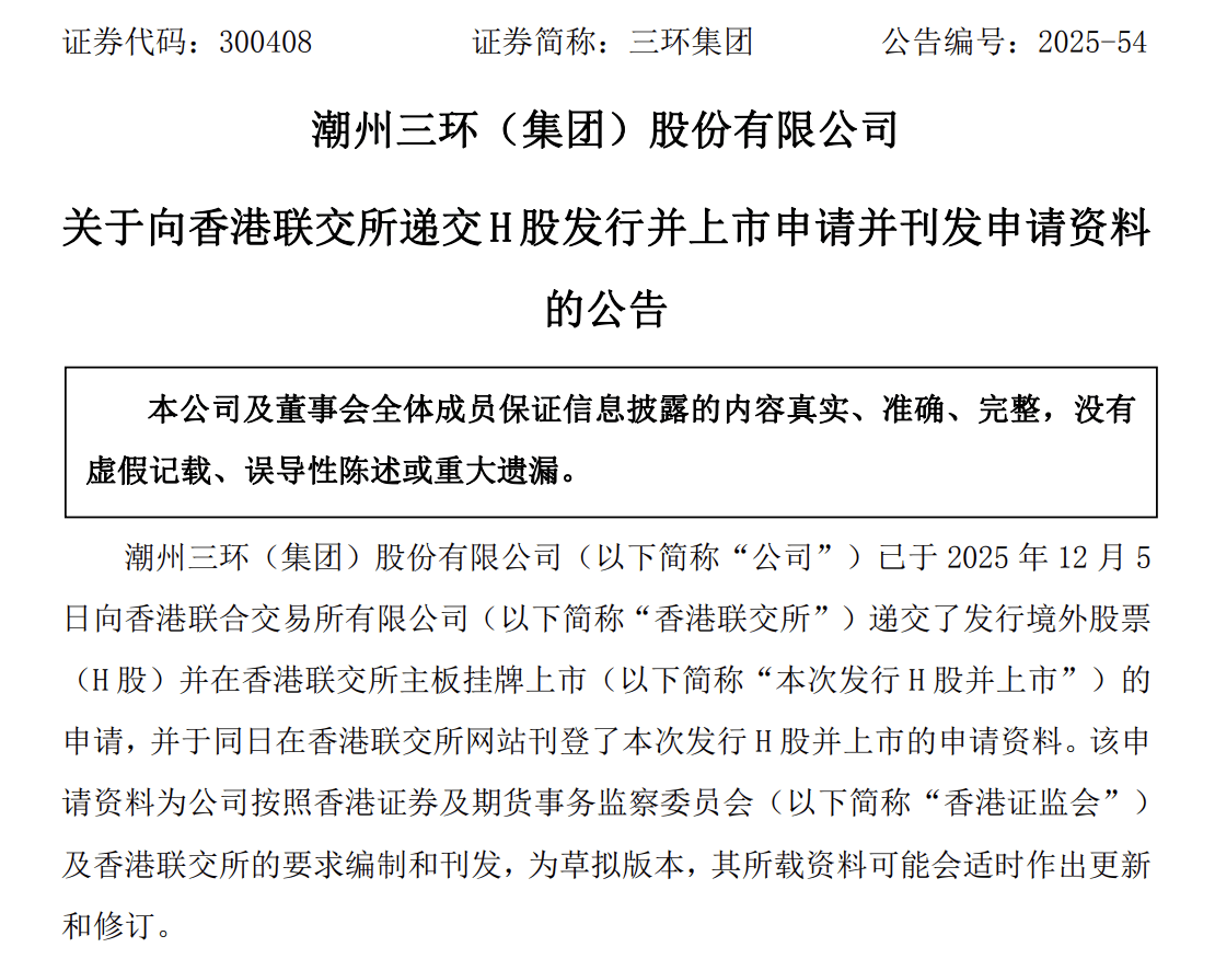 不过,其并未就此停下脚步。12月5日,三环集团正式向香港联交所递交上市申请文件,开启赴港上市进程。