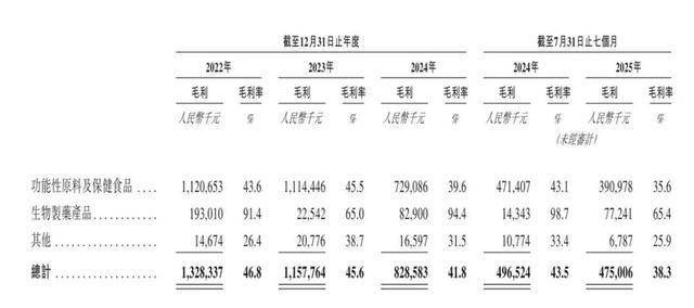 分业务来看,石药创新功能性原料及保健食品各期毛利率分别为43.6%、45.5%、39.6%及35.6%;生物制药产品各期毛利率分别为91.4%、65.0%、94.4%及65.4%。