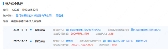 据公开信息披露,12月12日海辰储能部分子公司及创始人相关持股平台的股权已被司法冻结。