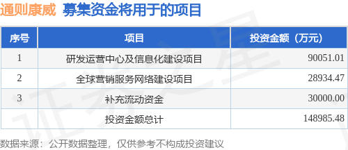 证券之星消息,广州通则康威科技股份有限公司(简称:通则康威)拟在深交所创业板上市,募资总金额为13.81亿元,保荐机构为中信建投证券股份有限公司。募集资金拟用于研发运营中心及信息化建设项目、全球营销服务网络建设项目、补充流动资金,详见下表: