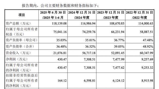 业绩方面,2022年-2024年及2025年上半年,东方测控营业收入分别为6.03亿元、5.21亿元、5.67亿元和2.11亿元,净利润分别为9257.69万元、7477.99万元、7308.51万元和430.47万元,综合毛利率分别为42.10%、39.16%、41.29%和37.91%。