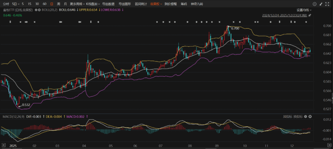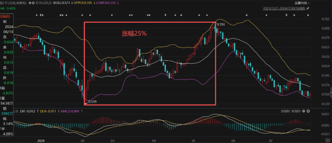 而畜牧ETF此时处于股价相对低位,受益于基本面小幅回暖和股市回暖,3月份开始小步上涨,用布林线和MACD可以较好地捕捉波段收益。