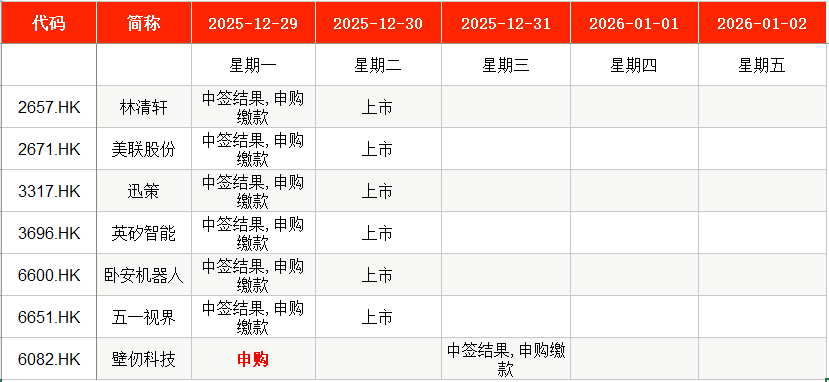 港股方面,Wind数据显示,本周(12月29日至12月31日)壁仞科技(06082.HK)将在周一申购。