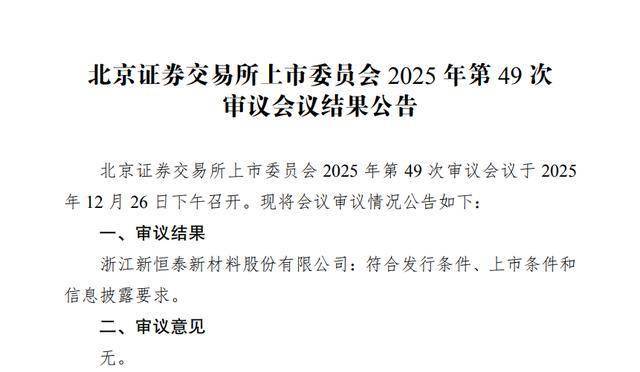 瑞财经 李兰12月26日,浙江新恒泰新材料股份有限公司(以下简称:新恒泰)北交所IPO过会,保荐机构为浙商证券,保荐代表人为蒋根宏、潘洵,会计师事务所为立信会计师事务所。