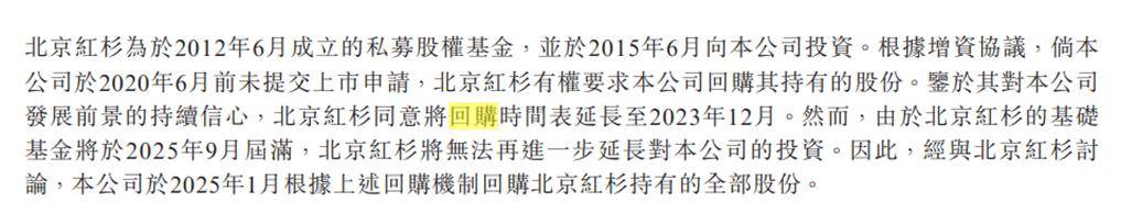 在此之后,红杉资本因对公司发展前景有信心,将回购期限延长至2023年12月,但是公司还是未能在规定期限内完成上市目标,红杉最终行使赎回权离场。