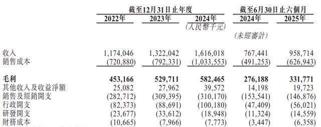 毛利率下滑的主要受原材料价格上涨的不利影响与消费端的定价弱势。2022年至2024年及2025年上半年,公司原材料成本分别达4.89亿元、5.76亿元、7.71亿元、及4.70亿元,分别占同期总收入的41.7%、43.5%、47.7%、48.2%及49.1%。在原材料成本持续上涨背景下,盈利韧性不足的问题愈发凸显。
