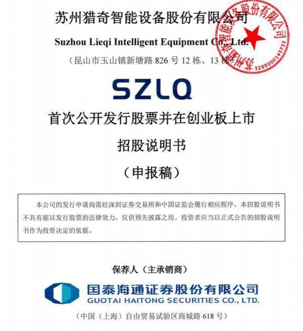 瑞财经 王敏 12月26日,据深交所官网,苏州猎奇智能设备股份有限公司(以下简称“猎奇智能”)创业板IPO获受理,保荐机构为国泰海通,保荐代表人为贺南涛、任飞。