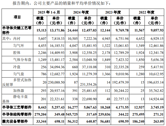 从托伦斯情况来看,附加值更高的半导体关键工艺零部件产品,单价、毛利率均较高。报告期内,该公司整体毛利率分别是29.84%、22.39%、29.45%、29.72%。