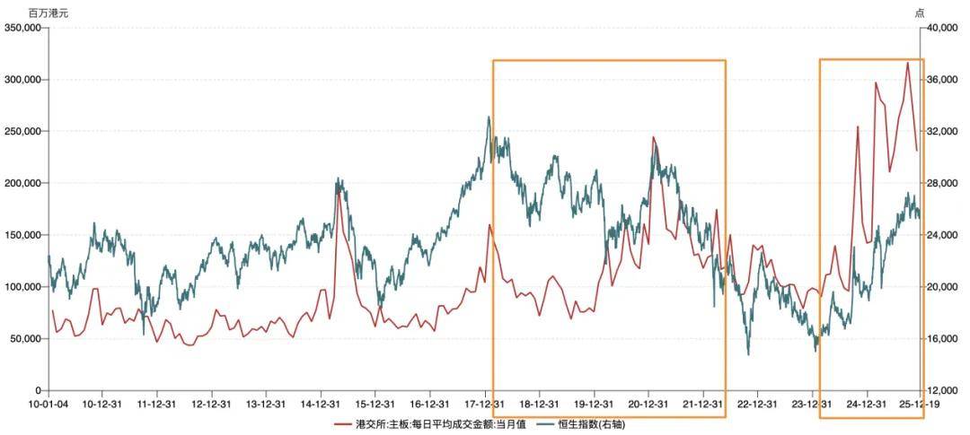 图:恒生指数走势、港交所主板日均成交额 资料来源:Wind、36氪整理