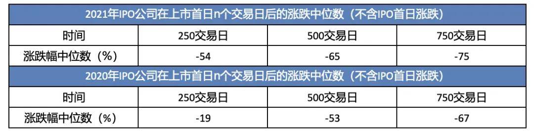 更深层的问题在于,这种颓势随着时间推移还在加剧。复盘数据显示,无论是2020还是2021年的新股,其上市后250、500、750个交易日的跌幅(不含上市首日)中位数都在持续扩大。这意味着,除了大盘的系统性风险,企业自身的质地与定价或许才是股价失速的根源。