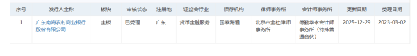 而南海农商银行则于2018年启动上市辅导,于2019年5月首次向证监会提交IPO申请并拟在深交所中小板上市,同样因全面注册制改革,该行于2023年3月将上市申请平移至深交所。此后,南海农商银行也曾多次因财务资料过期而“中止”上市进程。
