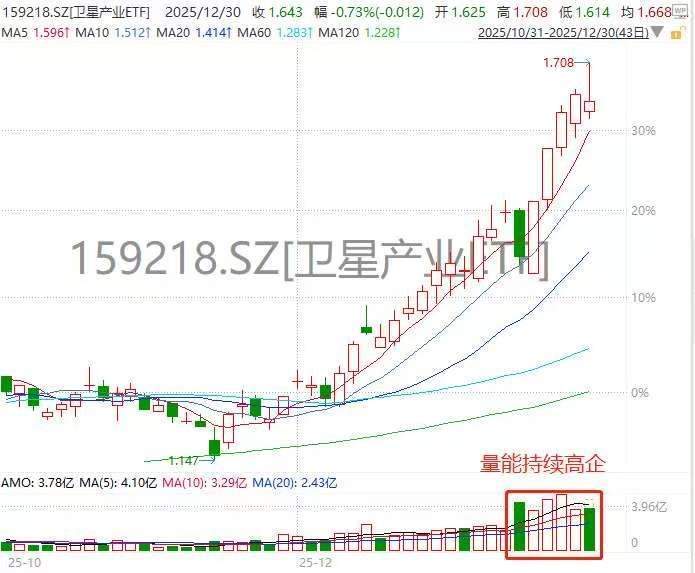 12月30日,卫星板块反复活跃。截至13时52分,表征板块的卫星产业ETF(159218)成交额约3.7亿,近5日日均成交额4.2亿,连续6日成交破3亿!交投势能逐级放大。