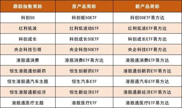 例如,对通过港股通机制投资港股的行业主题ETF,在简称中加入“港股通”字样,如将“恒生创新药ETF”调整为“港股通创新药ETF易方达”;还有去掉冗余汉字或数字,如将跟踪科创50指数的“科创板50ETF”调整为“科创50ETF易方达”,将跟踪科创成长指数的“科创成长50ETF”更名为“科创成长ETF易方达”。