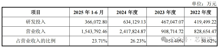 长鑫科技高度重视核心技术的自主研发。招股书显示,2022年至2025年上半年,长鑫科技累计研发投入为188.67亿元,占累计营业收入的33.11%,其中2024年研发投入63.41亿元,同比2023年增长35.77%。