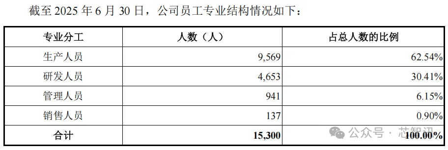 研发团队方面,截至2025年6月30日,长鑫科技拥有研发人员共计4653人,在总员工当中的占比为30.41%。