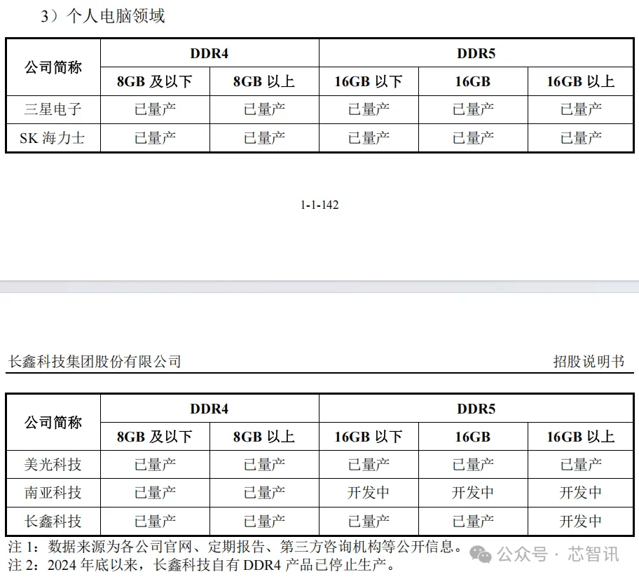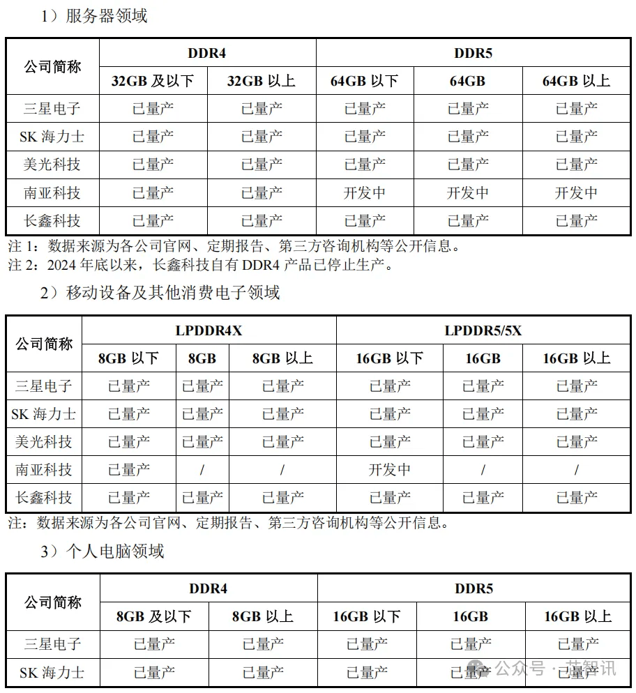 即便是与全球头部的三星、SK海力士、美光等DRAM大厂相比,长鑫科技的DRAM产品布局也已经持平。