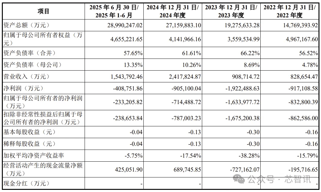 报告期各期,归属于母公司所有者的净利润分别为-83.28亿元、-163.40亿元、-71.45亿元和-23.32亿元;截至2025年6月30日,公司累计亏损为-408.57亿元,公司尚未盈利且存在累计未弥补亏损。