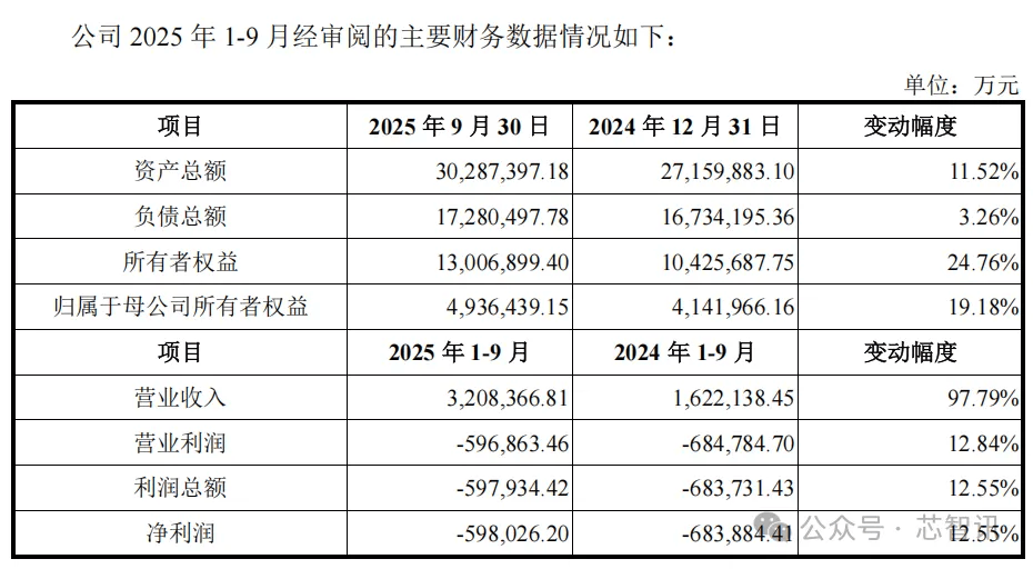 2025年1-9月,长鑫存储营收320.84亿元,亏损59.80亿元。2022年至2025年9月累计营收达736.36亿元,累计亏损445.14亿元。