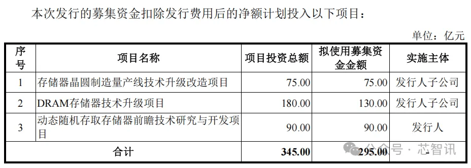 长鑫科技本次科创板IPO拟募集资金高达295亿元,主要用于存储器晶圆制造量产线技术升级改造项目、DRAM存储器技术升级项目、动态随机存取存储器前瞻技术研究与开发项目。