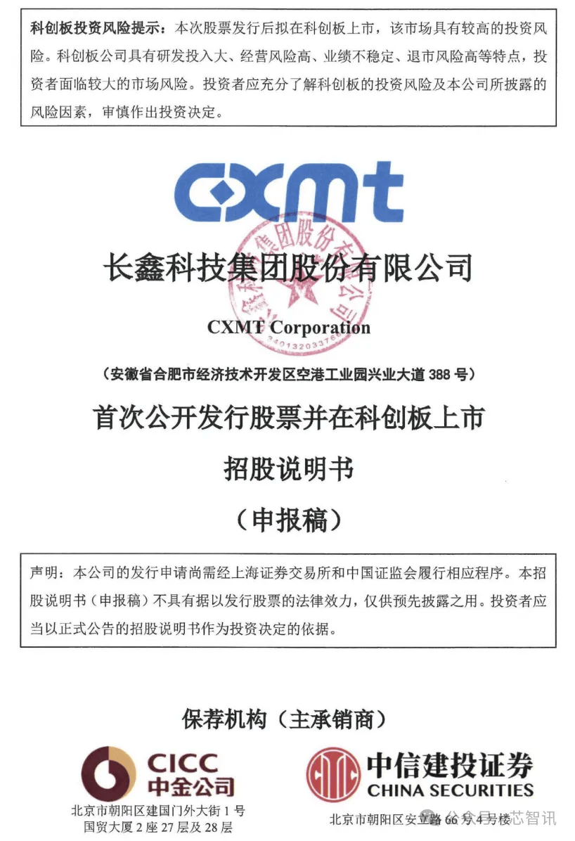 2025年12月30日晚间,长鑫科技集团股份有限公司(以下简称“长鑫科技”)正式向上海证券交易所递交招股书,拟在科创板挂牌上市。保荐机构微中金公司和中信建投。