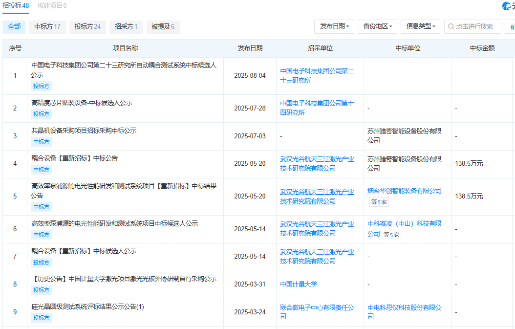 界面新闻了解到,成立第二年(2016年),猎奇智能便向中际旭创交付首台耦合设备,2017年交付首台老化测试设备,2019年交付首台共晶贴片设备,2020年交付首台固晶贴片设备,至今成为中际旭创封装设备的主要供货商。