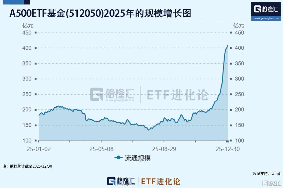 2025年格隆汇十大核心ETF跑赢市场10%,A500ETF基金(512050)上涨25%,12月“吸金”193亿元