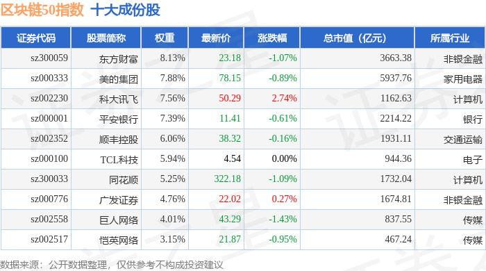 证券之星消息,12月31日,区块链50(399286)指数报收于4006.73点,涨0.53%,成交582.92亿元,换手率3.19%。当日该指数成份股中,上涨的有31家,利欧股份以9.94%的涨幅领涨,下跌的有18家,数字认证以3.94%的跌幅领跌。