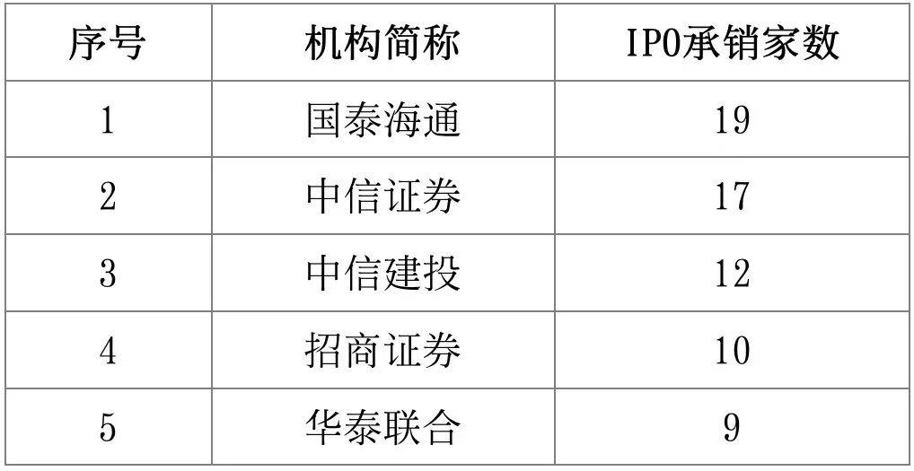 表1:2025年IPO承销家数TOP5券商