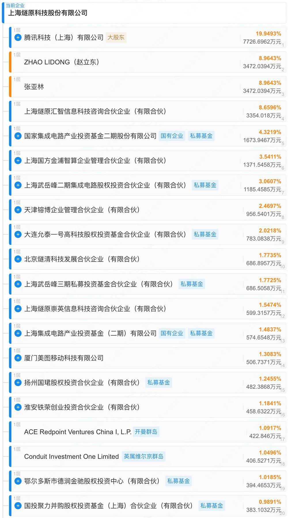 ▲燧原科技前20名股东(图源:企查查)