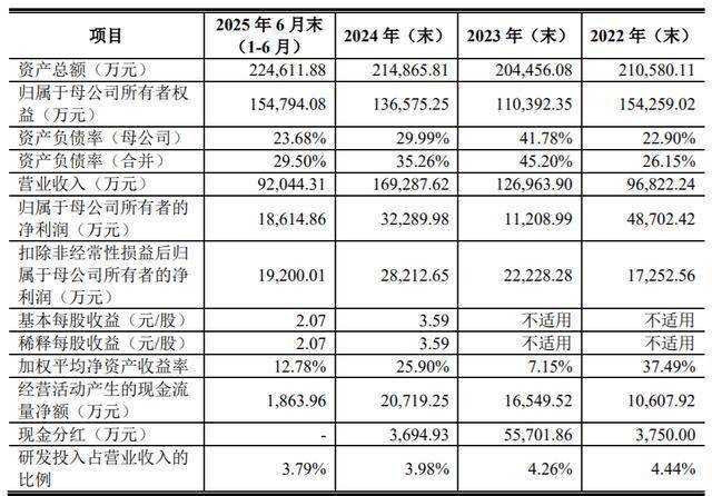 业绩方面,2022年至2024年及2025年上半年,天博智能营业收入分别为9.68亿元、12.70亿元、16.93亿元和9.20亿元;归属于母公司股东的净利润4.87亿元、1.12亿元、3.23亿元及1.86亿元。