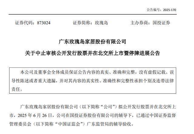 乐居财经李兰12月31日,玫瑰岛(873024.NQ)发布公告,北交所批准了公司关于中止审核的申请,保荐机构为国投证券股份有限公司。
