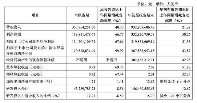 2025年前三季度,聚辰股份实现营收为9.33亿元,同比增长21.29%;归母净利润为3.2亿元,同比增长51.33%。