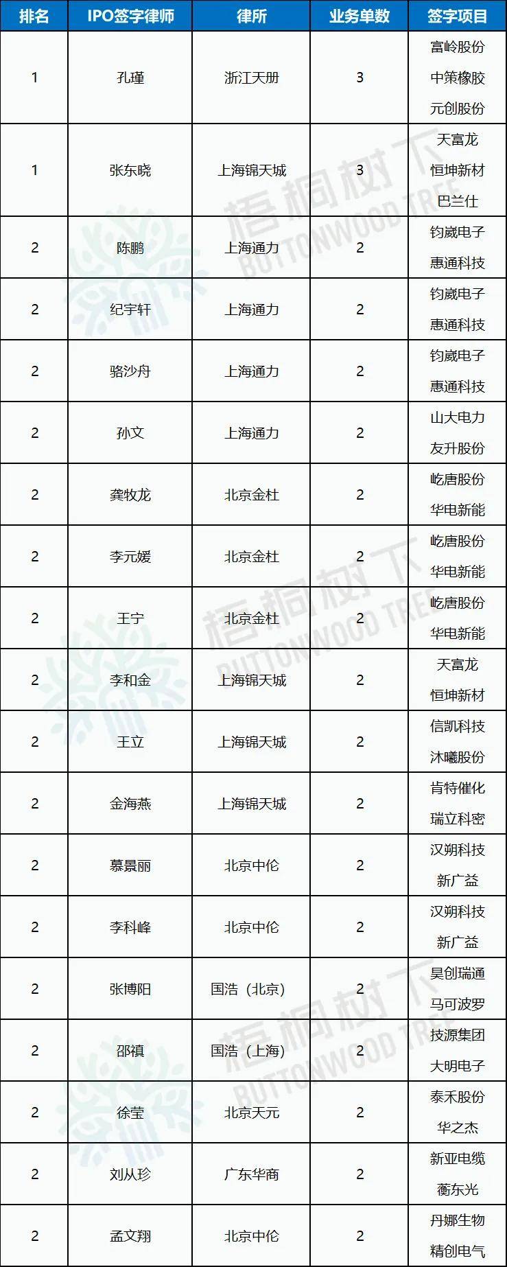 (仅统计上市项目量2家及以上的签字律师)