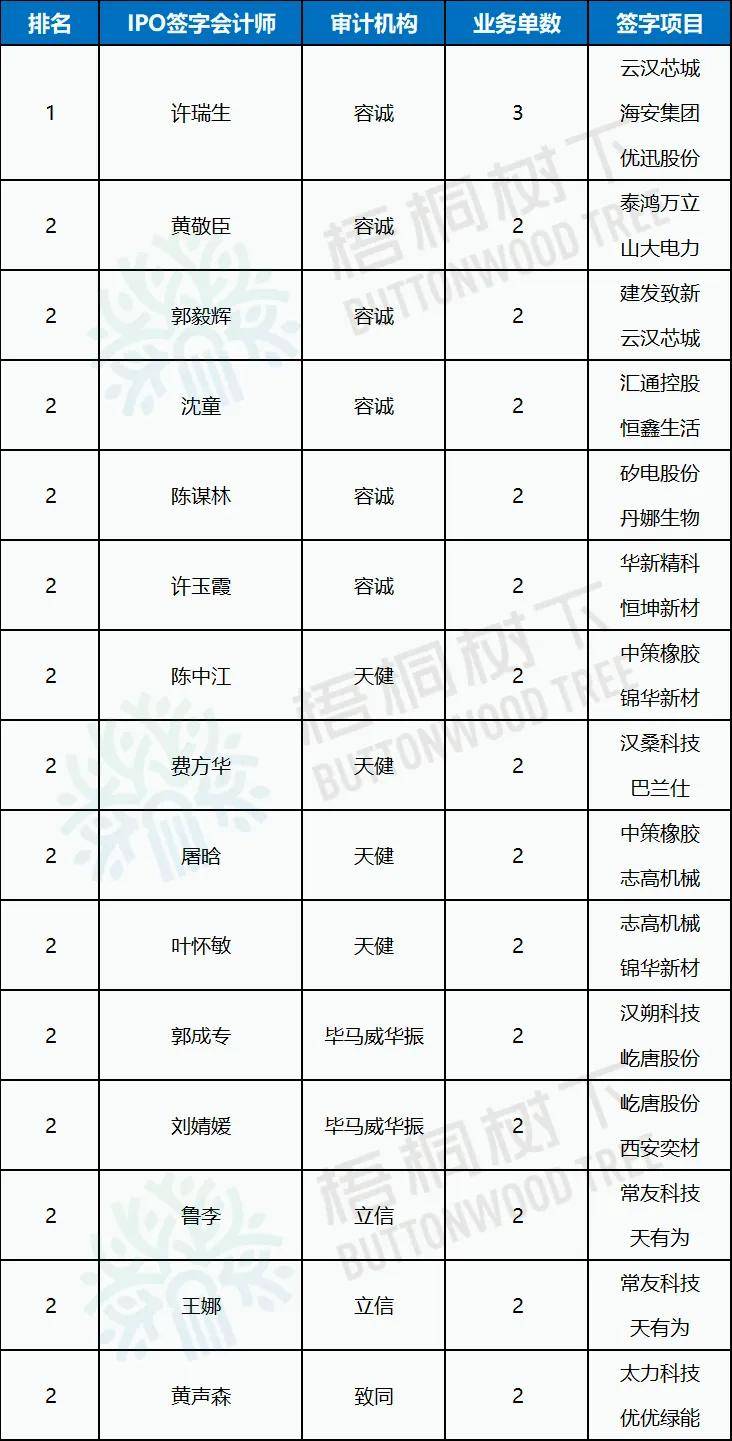 (仅统计上市项目量2家及以上的签字会计师)