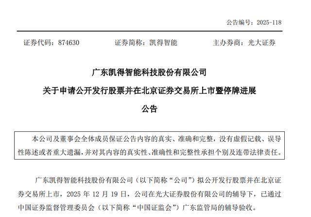乐居财经 李兰近日,凯得智能(874630.NQ)发布公告,北交所已受理公司向不特定合格投资者公开发行股票并上市的申请。
