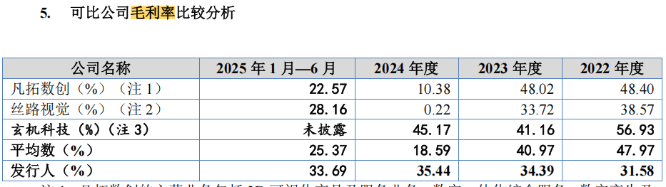 报告期内,原力数字的毛利率分别为31.58%、34.39%、35.44%和33.69%,同期可比公司的毛利率均值分别为47.97%、40.97%、18.59%和25.37%。