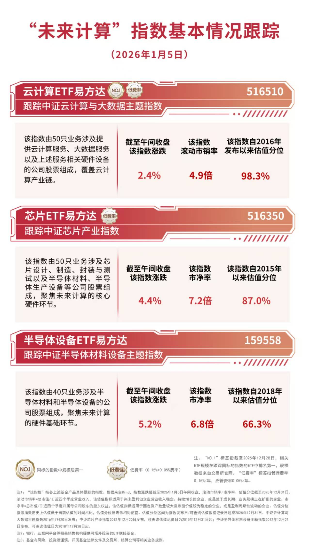 截至午间收盘,中证半导体材料设备主题指数上涨5.2%,中证芯片产业指数上涨4.4%,中证云计算与大数据主题指数上涨2.4%。