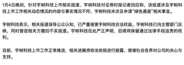 对此,宇树科技回应称,该报道涉及宇树科技上市工作相关动态情况的内容与事实情况不符,公司未涉及申请“绿色通道”相关事宜。
