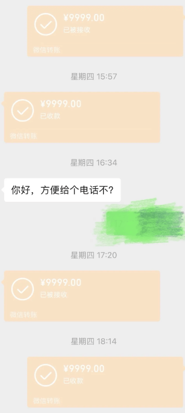 回家路上,邱女士收到大哥信息称要给她打个电话,“电话打过来是他儿子,说这个钱要必须要给我退回来让我一定要听他的,他认为东西本不属于他只是我运气好,红包不能要,让我一定要尊重他的想法,三番五次打电话,转给我我又退回去,转了两次又退了两次。”
