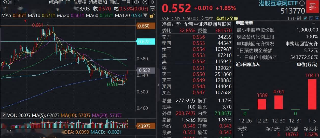 值得注意的是,资金已迅速行动,南向资金净买入超187亿港元,创近两个半月来单日流入新高。ETF方面,上交所数据显示,港股互联网ETF(513770)单日获资金涌入1.04亿元,彰显对后市的乐观预期。
