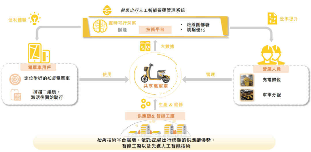 松果的成功并非偶然,其商业模式高度专注且垂直。招股书显示,公司几乎所有收入都来自于共享电单车业务。它构建了一套从电单车自主设计、生产到运营管理的全价值链体系。