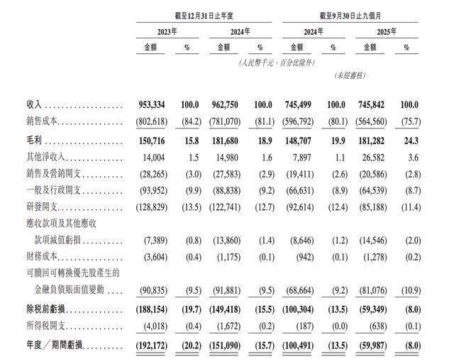 2023年、2024年及2025年前9月,松果出行收入分别为9.53亿元、9.63亿元及7.46亿元,年度/期间亏损分别为1.92亿元、1.51亿元、5998.7万元,毛利率分别为15.8%、18.9%、24.3%。