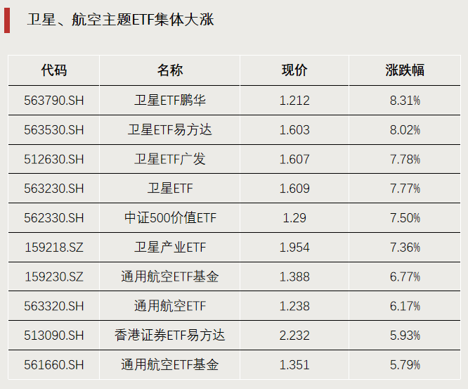 卫星、通用航空主题ETF领涨