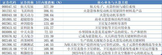 3个月来A股航天相关涨幅居前个股。数据来源:Wind 制图:界面新闻