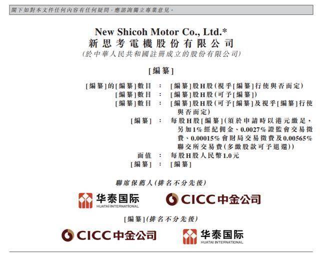 瑞财经 王敏 1月2日,据港交所披露,新思考电机股份有限公司(以下简称“新思考”)向港交所主板提交上市申请,华泰国际、中金公司为其联席保荐人。