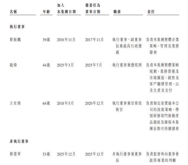 蔡荣军博士,53岁,出生于广东省揭阳市揭西县,非执行董事兼董事长,主要负责监督和向董事会提供专业的判断。蔡博士于2025年12月加入集团并获委任为董事。